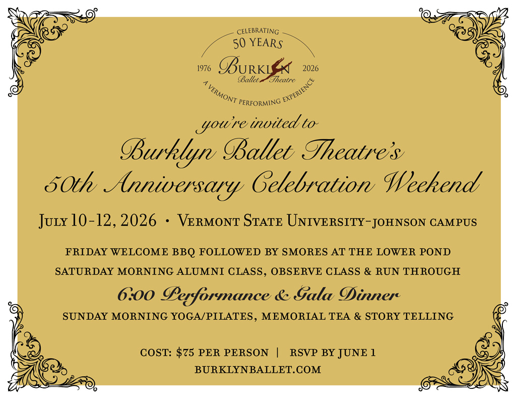 Since 1976, Burklyn Ballet Theatre has welcomed generations of young dancers to Vermont to train, perform, and experience the rhythm of a professional ballet company. What began as a small summer program has grown into a community that spans the globe, with alumni performing, teaching, choreographing, and leading dance programs around the world.
